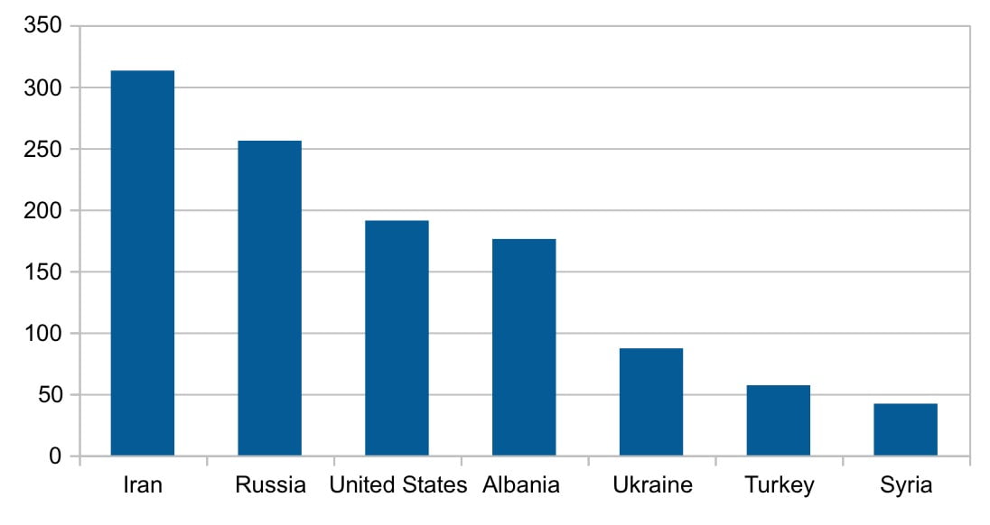 - Iran – 313